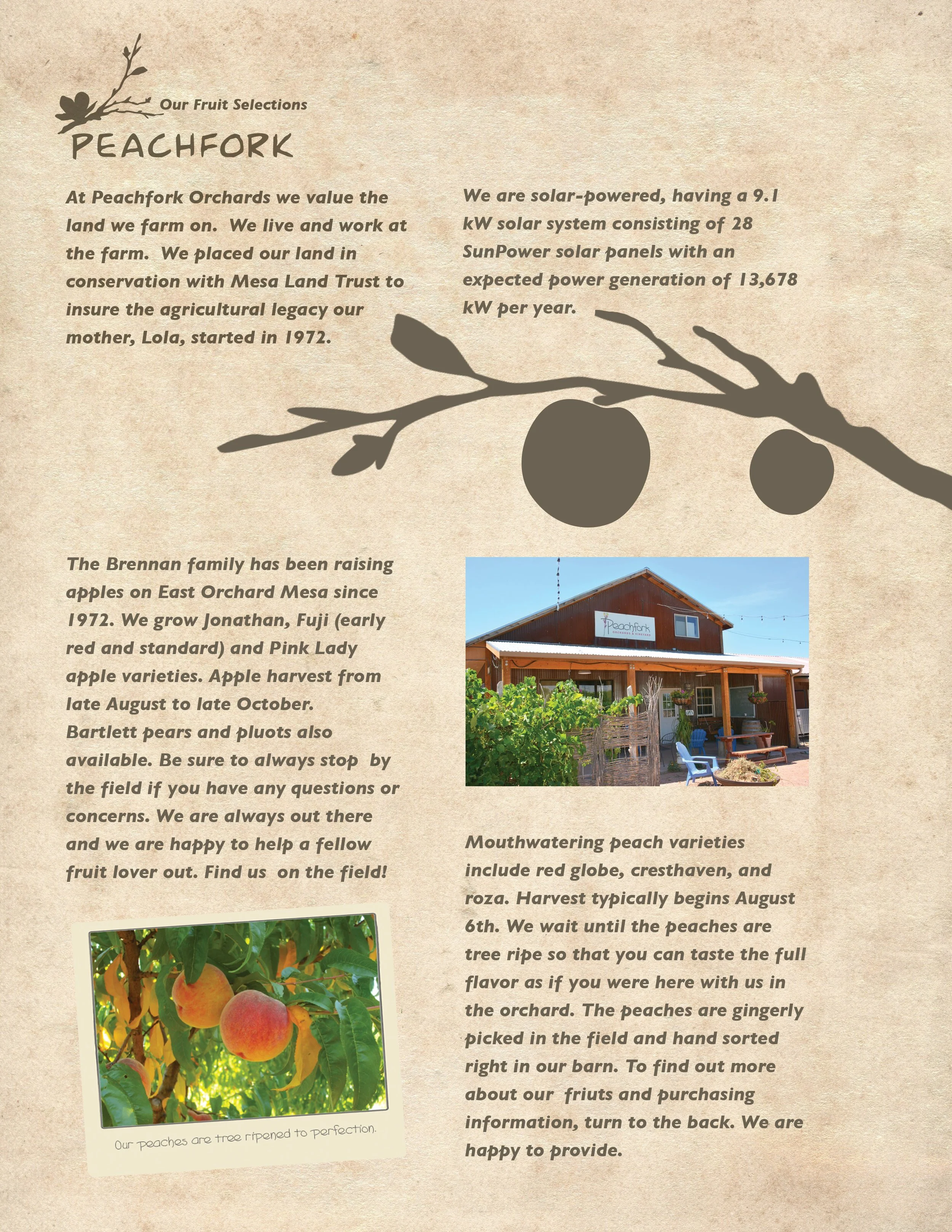 The business card prominently displays the newly designed logo and on the back uses designed tree branches from peach trees to play with the typography information. For the freebee a wetnap was created since so many people will be eating and enjoying the trade show they do not have time to go to the restroom to wash their hands. The eblast uses fun and bold colors to get the viewer’s attention and guide them to the booth and after party. The sales sheets highlight both the produce and wines that Peachforks sells. Providing a helpful log of case and unit specifications and barcodes to check out. Lastly, the takeaway highlights the fun and vibrant culture that Peachfork provides when visiting the orchard. On the back you can find a fun pairing guide to find the best flavors that complement both their produce and wines.